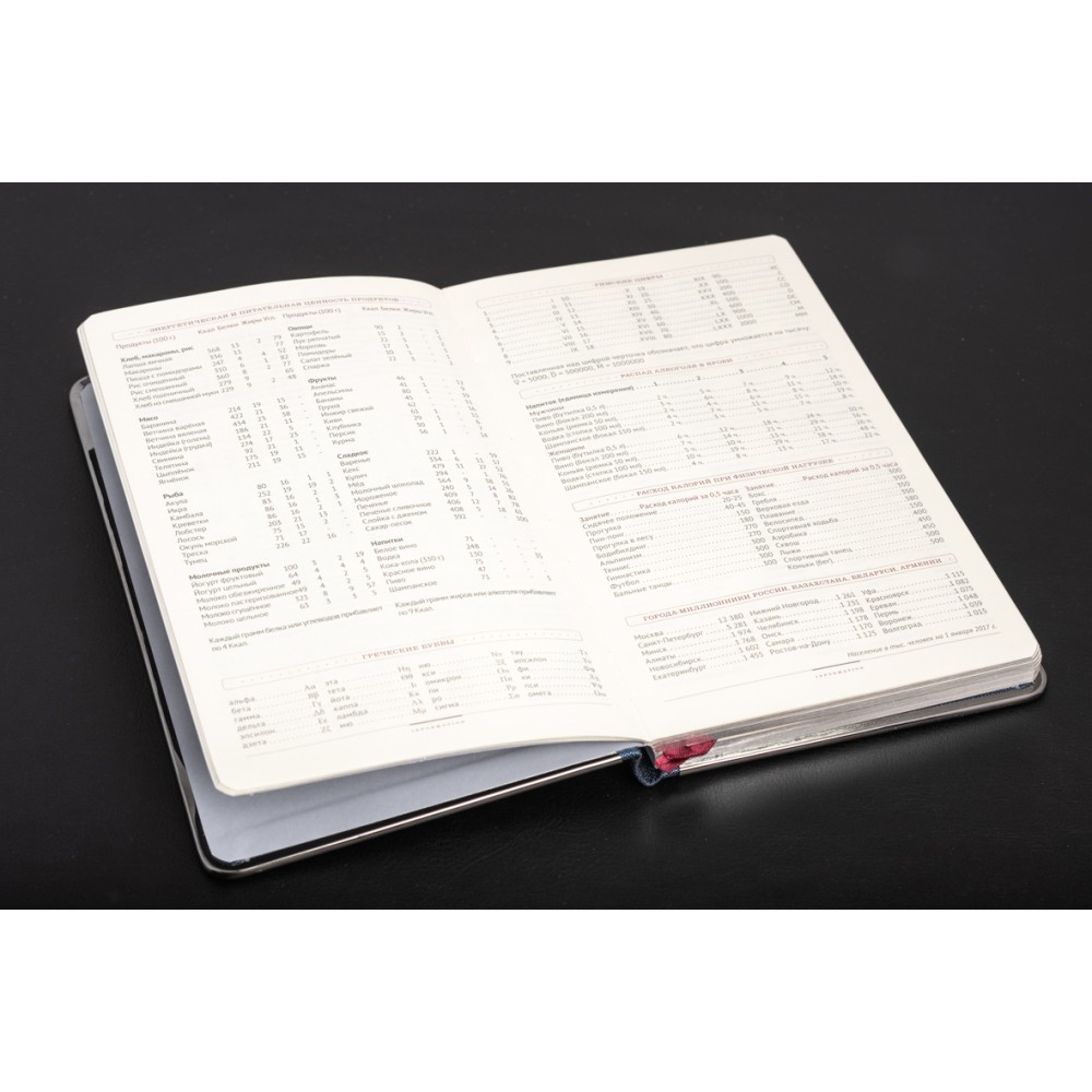 Оформить заказСиний ежедневник формата А5 доступен в твердом переплете. Эффектный рельеф обложки с благородным матовым эффектом напоминает натуральную кожу. Солидный и респектабельный образ создается с помощью металлической окантовки. Его блеск усиливается, чтобы соответствовать разрезу. Скругленные углы ежедневника подчеркивают изящество и элегантность. Недатированный блок состоит из 272 переплетенных страниц. Бежевая бумага снижает усталость от работы. Плотность листа 70г/кв. Обновлена справочная информация (единицы измерения, часовые пояса, номера телефонов и т. д.) на 19 страницах и добавлены тонкие шелковые закладки для более удобной навигации. Вы можете заказать тиснение на обложке этого дневника.