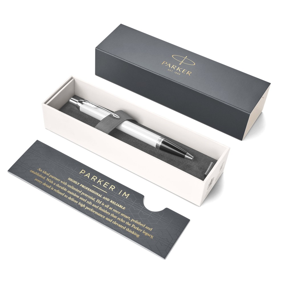 В новой коллекции Parker IM проявляется весь опыт Parker по созданию баланса формы и функциональности. Каждая деталь от стилизованной стрелки до стальной секции захвата, тщательно изучается, при этом лишние детали отбрасываются в пользу повышения комфорта, практичности и лаконичности стиля. Сочетая дизайн и стоимость по принципу "ничего лишнего" с непреходящим стремлением к обеспечению качества Parker, эта ручка стала идеальным пишущим инструментом для жизни в движении.